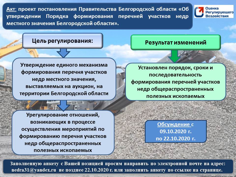 Проект постановления Правительства Белгородской области «Об утверждении Порядка формирования перечней участков недр местного значения Белгородской области»